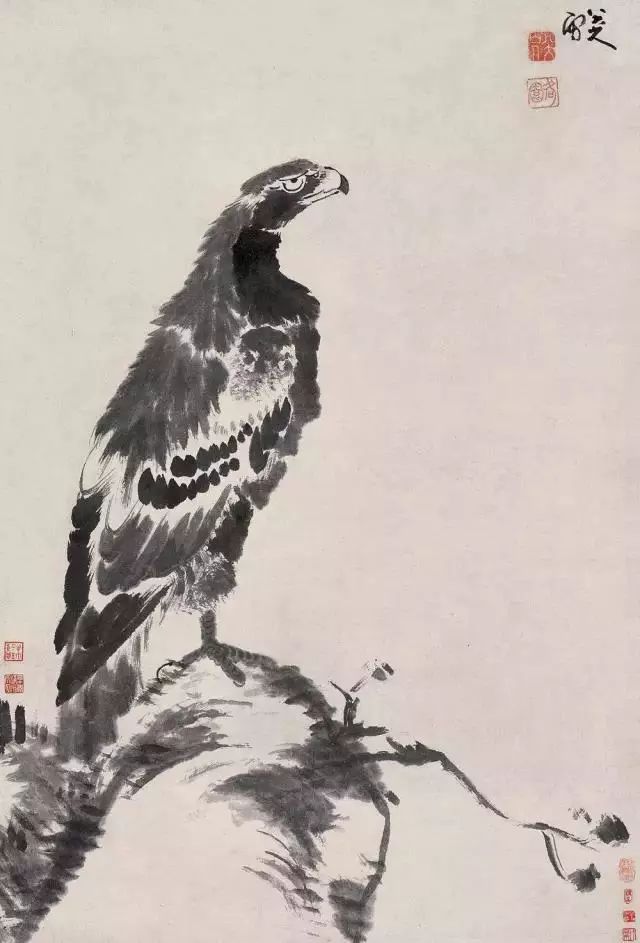 以上三幅畫,都是八大山人之作,看位置就知道哪些是引首章,哪個是壓角章了