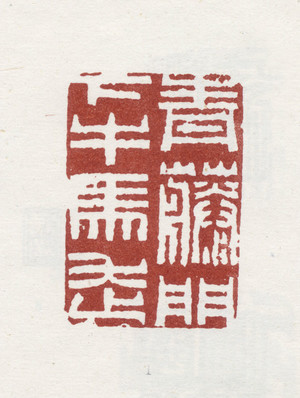 蓋於書畫作品右上方,多為長方、圓形、葫蘆形等非方形,用於「破形」「提升」畫面氣勢。若款首整齊呆板,一枚引首章可打破僵局。 - 壓角章(押角章)